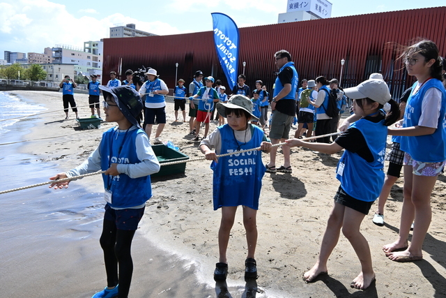 2025年に開港400年を迎える青森市の青森港。昭和に青函連絡船の岸壁拡充で砂浜が失われましたが、21年に「あおもり駅前ビーチ」がオープンし、人々の暮らしのそばに海がある、かつての姿を取り戻しつつあります。昨年に続き、魚がすみやすい砂浜を目指してTOYOTA SOCIALFES‼が開かれ、家族連れや高校生、仕事仲間など、県内の約90人が参加しました。