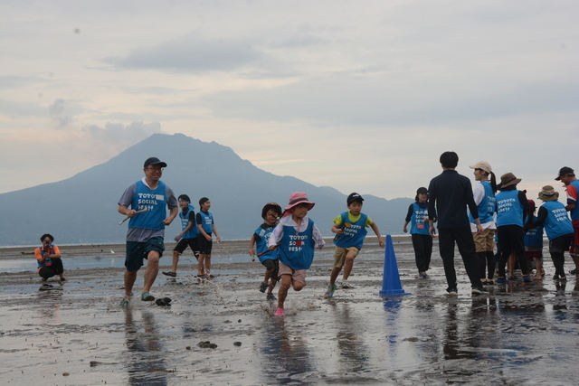 「TOYOTA SOCIAL FES 」は、鹿児島県の美しい自然を守るための活動に取り組んでいます。今年は7月に姶良市の重富海岸で「干潟の大運動会」を開きました。