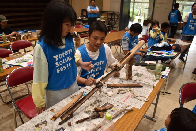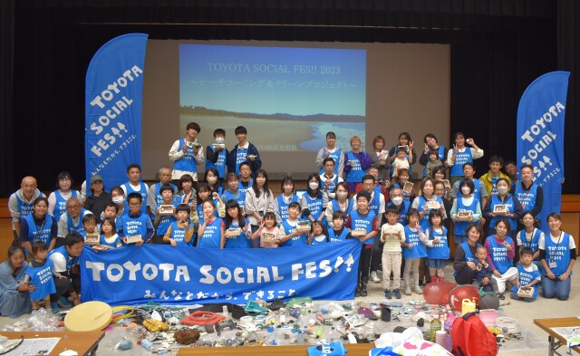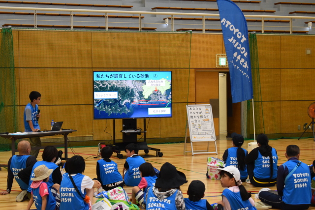 黒潮町の入野海岸は、全長約4キロの美しい遠浅の海岸線が続く、日本の渚百選にも選ばれた海岸です。この美しい海岸にも、さまざまな漂流物が流れ着きます。流木、クジラの骨、近年問題になっている海洋マイクロプラスチックもその一つです。高知県の豊かな自然を守るためにTOYOTA SOCIAL FES‼では、砂浜美術館と連携し、入野海岸に流れ着く漂流物から海の環境問題や自然とのつながりを学びつつ、拾った漂流物でクラフト作りに挑戦してもらいました。