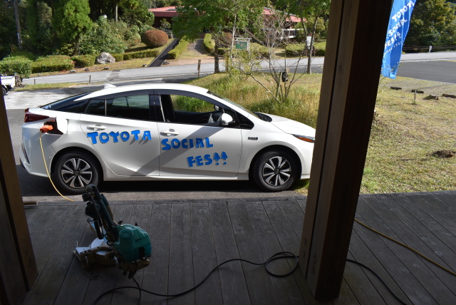 今回、クラフトの際のグルーガンへの給電で活躍したのが、トヨタ自動車のプリウスPHV。実際にプリウスPHVから給電しつつ、グルーガンを使用する様子を配信したほか、木材をカットするためのスライドソーへの給電も実演配信し、その汎用性を発揮しました。コロナ禍で実際にチェーンソーを使用して間伐体験を実施してもらえなかったのは心残りでしたが、また機会があれば是非、実際の自然の中で体験していただきたいです。