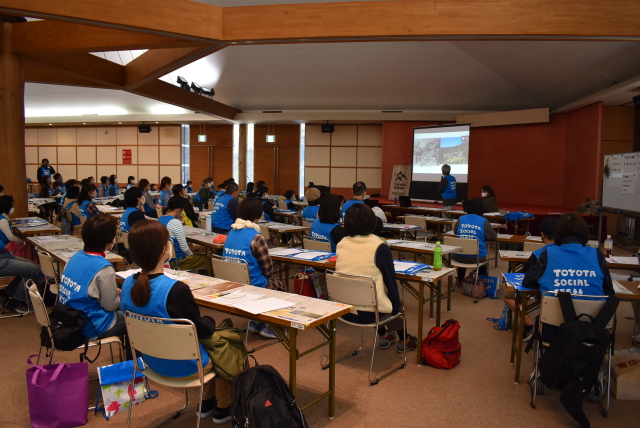 開催当日は抜けるような青空、そして山間の少し冷んやりした空気の下「土佐山夢産地パーク交流館かわせみ」でTOYOTA SOCIAL FES!!2022in高知がスタート。現地には約70人、オンライン視聴でも多数が参加。第1部は高知大学名誉教授の石川慎吾先生に土佐山など里山の植生について講演してもらいました。生涯で40万枚の標本を作製し、約1500種類もの植物に命名した牧野富太郎博士と土佐山との関わり合いに触れる場面もあり、参加者は興味津々。実際に名付けた植物を見て「普段見慣れた植物の名前の由来が分かってとても身近になった」とうなずいていました。