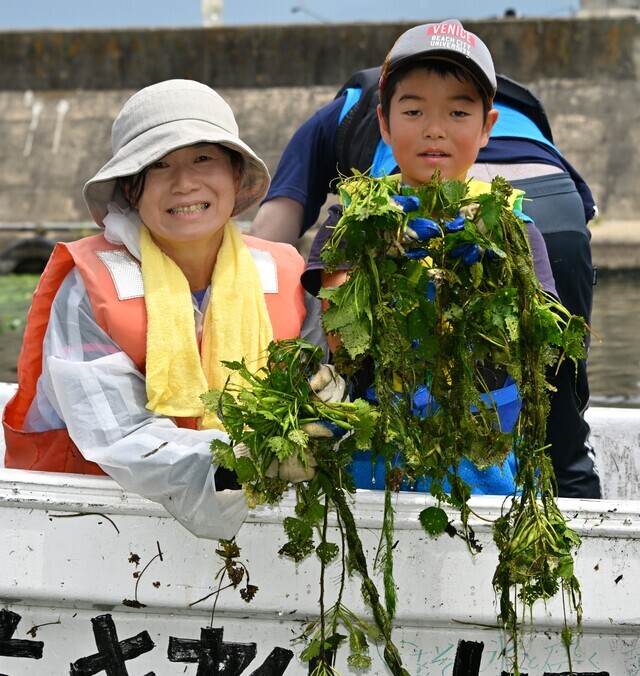 【抜いたヒシの重さに 諏訪湖への関心深まる】
