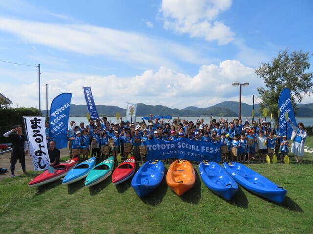 滋賀県では、琵琶湖を切り口とした持続可能社会へ向けた目標「マザーレイクゴールズ(Mother Lake Goa ls、MLGs)」を掲げています。9月28日(日)に開催した「TOYOTA SOCIAL FES!!滋賀会場」では、約100人が参加し、琵琶湖最大の内湖である西の湖の湖畔で、ヨシを使ったすだれ作りやカヌー体験を通して、琵琶湖の保全や継承について学びました。