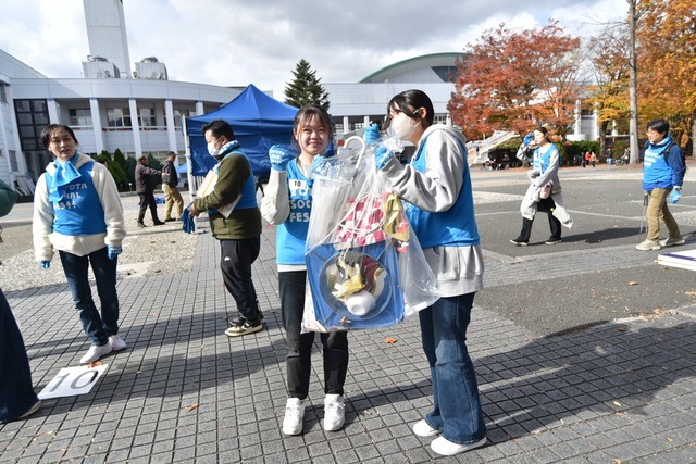 10月29日、寒河江市の最上川ふるさと総合公園で行われたTOYOTA SOCIAL FES!!は、競技形式のゴミ拾い「スポGOMI」を行った後、庄内浜で集めたマイクロプラスチックを使ってキーホルダーを作る―というものです。県内各地から約100人が参加しました。