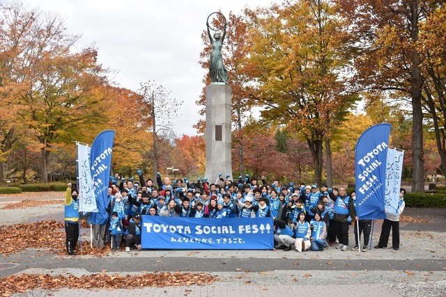 天童市にある県総合運動公園は「スポーツ・レクリエーションのメッカ」。サッカーJ2・モンテディオ山形のホームゲーム開催時は大勢のサポーターでにぎわうほか、スポーツを楽しむ人たちの姿が絶えません。緑豊かな中で爽やかな汗をかくためにも良好な環境は不可欠。11月8日に行われたTOYOTA SOCIAL FES!!には県内外の約110人が参加。競技形式のゴミ拾い「スポGOMI」を行いました。